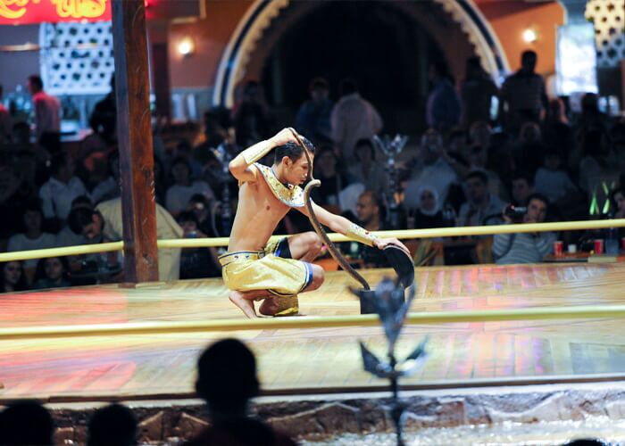 At Alf Leila We Leila Show in Sharm El Sheikh, you can enjoy a lovely evening of Arabian nights. This hypnotic show takes you on a trip through the Arabian culture’s magical stories and rich customs. This fantastic show takes place in a beautiful open-air theater with buildings and decorations inspired by the Middle East. When you enter this magical world, you are taken back to a time when sultans, princesses, and desert experiences were shared.