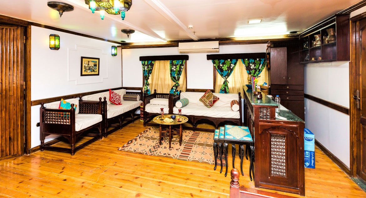 Amoura Dahabiya Nile Cruise is a beautiful river boat with six cabins that have been professionally designed and come with panoramic windows so that guests can watch the scenery go by in complete privacy from their room. Two people can stay in each cabin at the same time. There is also a large sundeck where guests can relax, take in the view, and enjoy the nice weather, all while making the most of the opportunities that the setting offers. This one-of-a-kind yacht will take you from Esna to Aswan and back again in style and comfort, letting you cruise the Nile in style and comfort the whole time you are on board. You can cruise along the Nile in style and comfort the whole time you are on board.