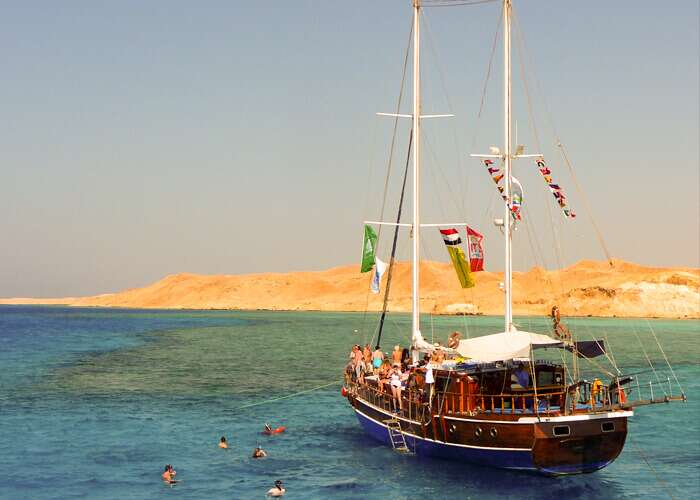 Then continue to sail towards Tiran Island, where you can do great snorkelling or swimming. Have lunch on the boat and sail again to the famous wreck of Thistlegrom. By the end of the day, sail back to the jetty of Sharm El Sheikh.